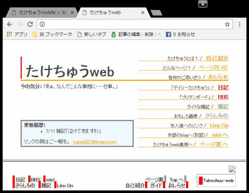 2001年にオープンした個人HP”たけちゅうweb”は、回線速度が遅い当時の事情に合わせてページを軽くし、 「ネットサーフィンの箸休めに」というコンセプトで、簡単シンプルな内容を公開していました。